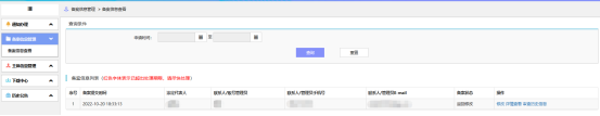 ④備案申請?zhí)峤缓?,在備案信息列表顯示所提交的備案申請信息和提交后的備案狀態(tài),如下圖所示。審核結果會以郵件和短信通知申請主體。